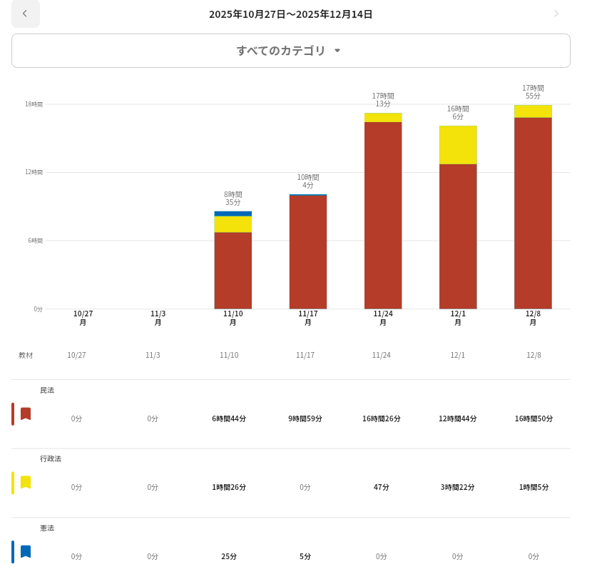 結果として、平均すると週あたり16~17時間程度の学習時間になっています。